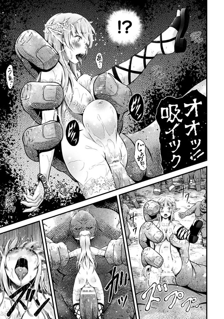 【エロ漫画】オークたちに囚われ犯されちゃうエルフ姫…おっぱい揉みやバックで生ハメ中出し輪姦レイプでアクメ堕ちしちゃう【あっきー:エルフ姫が堕ちて】