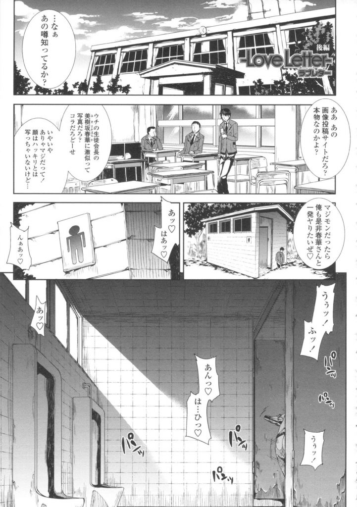 【エロ漫画】トイレでイチャラブセックスしちゃう生徒会長JK…ザーメンをぶちまけられ輪姦レイプで絶頂イキしちゃう【エレクトさわる:Love Letter】