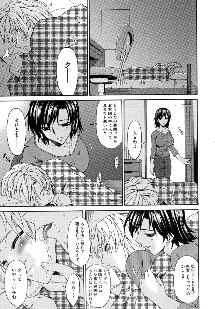 【エロ漫画】息子に見られているとも知らず家で不倫し続ける欲求不満ママ。欲求不満でドMな彼女はアナル責めされながら生ハメセックスさせられて感じちゃう!【唄飛鳥:つみはは】