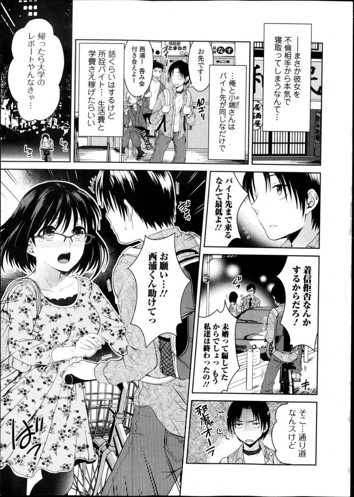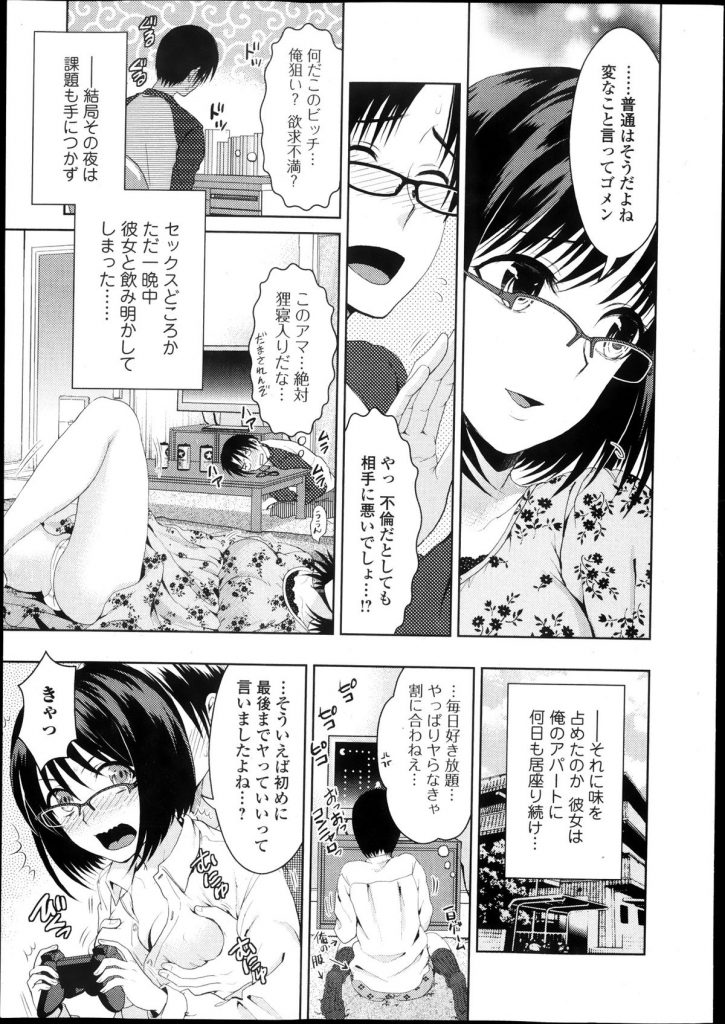 【エロ漫画】旦那と喧嘩をして家出をする彼女は大学生と不倫セックスする人妻…69でフェラをして勃起したチンポを生ハメすると中出し絶頂アクメ堕ちしちゃう【タマイシキネ:奪いたい女】