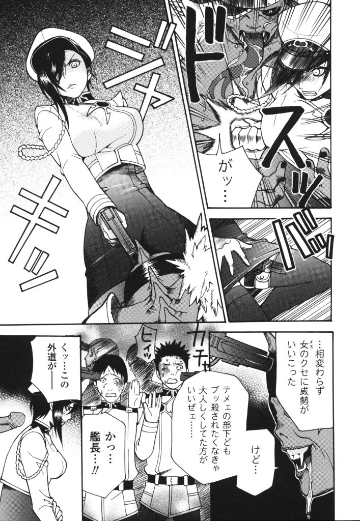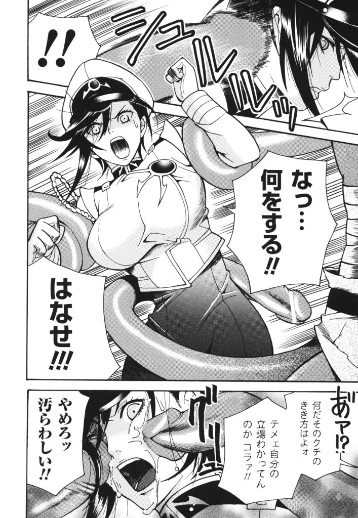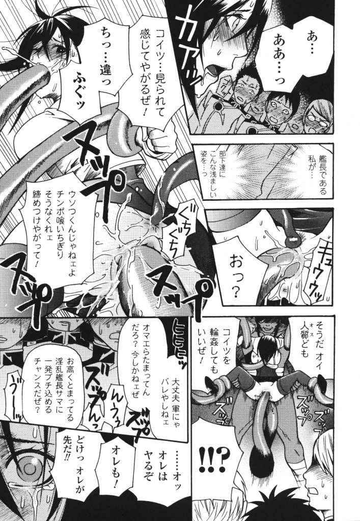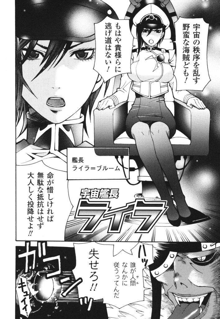 【エロ漫画】最凶最悪な宇宙海賊を討伐する艦長ライラ…戦艦に潜入を許してしまい、触手によって媚薬効果のある大量のザーメンを飲まされたあげく、肉穴にチンポが吸い付いてくると、しだいに艦長は淫乱になっていく【ウメ吉:宇宙艦長ライラ】