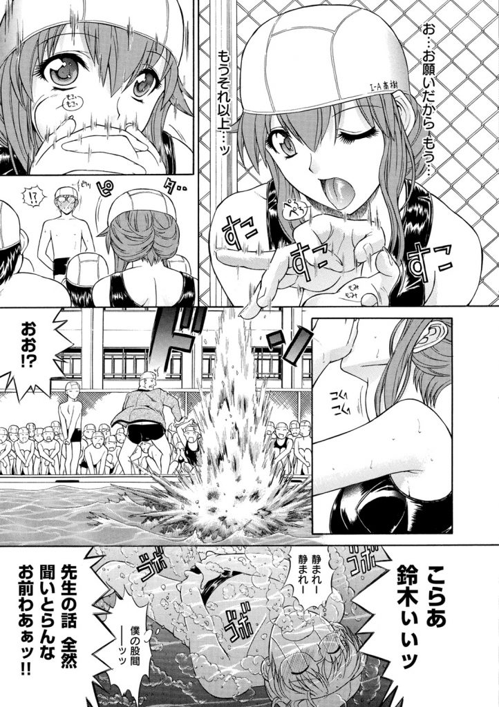 【エロ漫画】男子を誘惑してスク水で逆レイプする巨乳女子校生が、学校内で密かに行うエッチなプレイで中出しセックス。【鬼ノ仁:ハニィビィ #2】