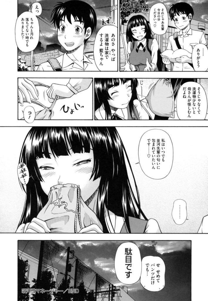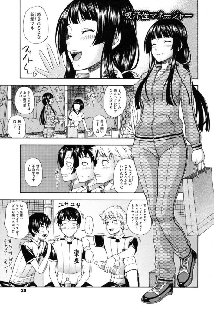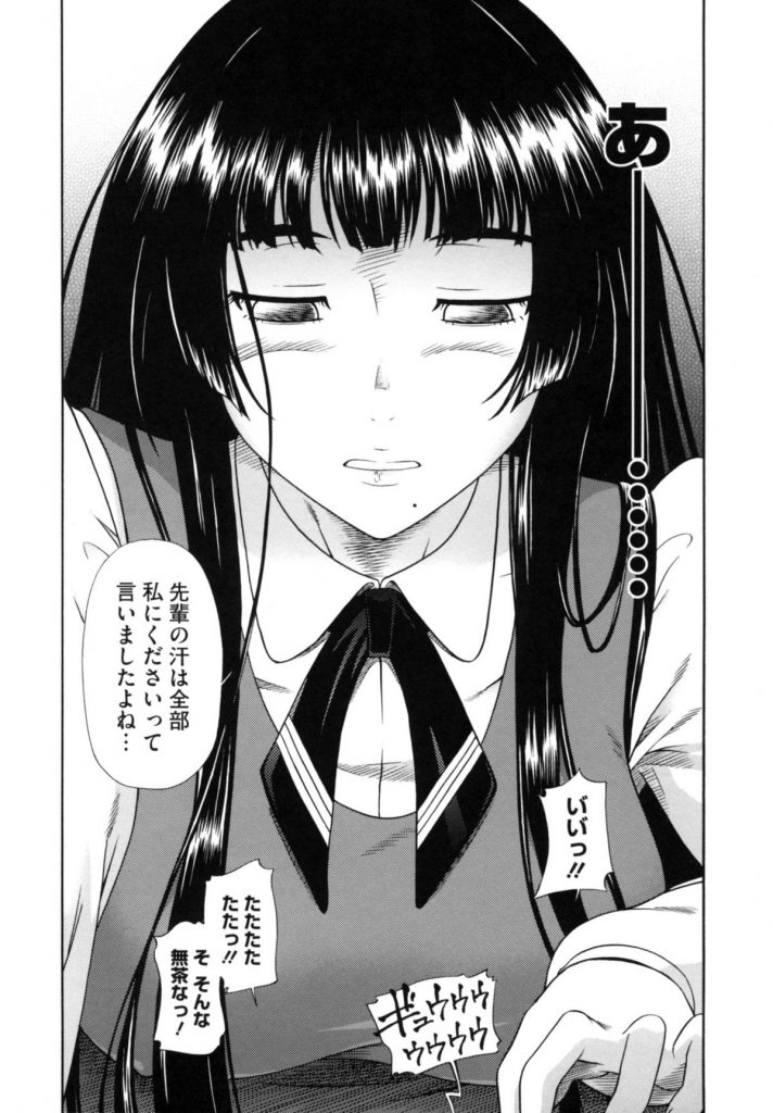 【エロ漫画】部活終わりの彼氏の汗を嗅ぎ舐めるJK…蒸れた仮性チンポに興奮!乳首責めで感じ騎乗位挿入され匂いフェチの巨乳彼女と部室で中出しセックス【フクダーダ:吸汗性マネージャー】