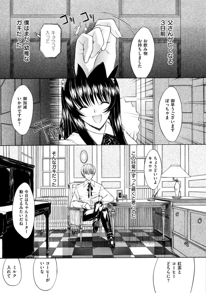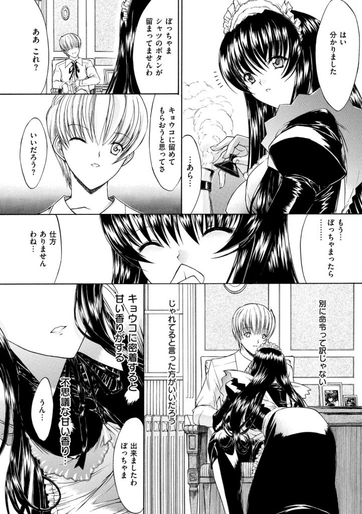 【エロ漫画】ご主人様の部屋に下着姿でいたところをお坊ちゃまに見られていた巨乳メイド…お坊ちゃまに目をつぶっていてもらいご奉仕をする巨乳メイドは、手コキフェラをして生ハメ中出しセックスしちゃう【鬼ノ仁:Rose Perfume.】