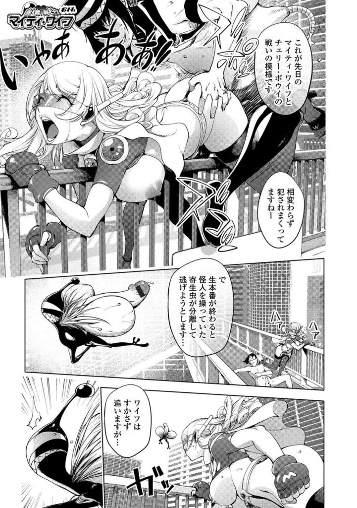 【エロ漫画】エネルギー補給のためコスプレで誘惑しちゃうお姉さん…バックや騎乗位で生ハメ中出しイチャラブセックス【蒟吉人:愛妻戦士マイティ・ワイフ6th】
