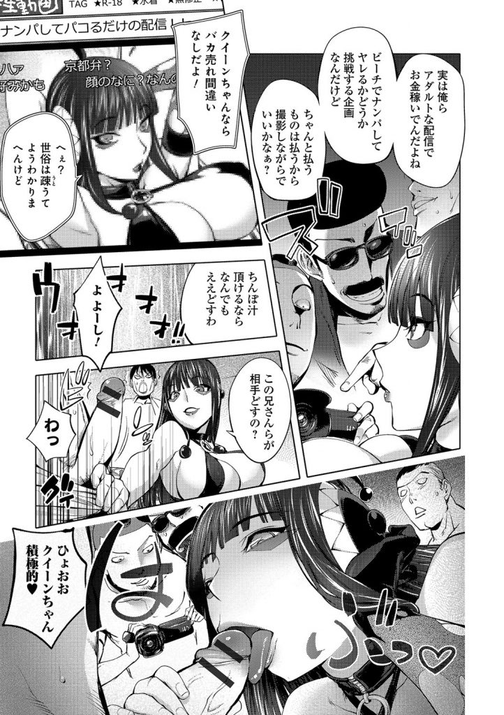 【エロ漫画】クイーンちゃんがワイフに吹っ飛ばされて海に…海でダーク・エナジー充電に激しく中出しセックスしちゃう!【蒟吉人:愛妻戦士マイティ・ワイフ 7th】