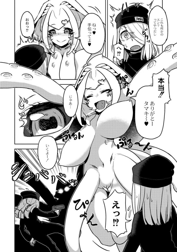 【エロ漫画】ショタを誘惑して逆レイプしちゃう発情した人外お姉さん…おっぱい揉みや生ハメ中出しいちゃラブセックスで絶頂アクメ堕ちしちゃう【あちゅと:烏とイカの捕獲大作戦! 】