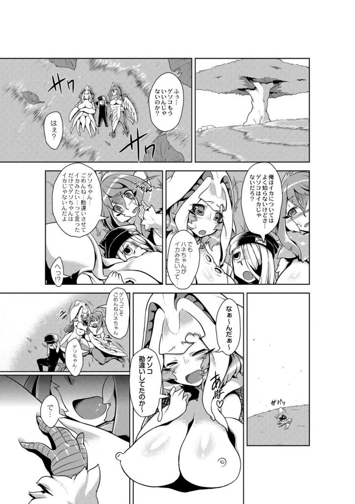 【エロ漫画】ショタ人間に発情して犯しちゃう人外巨乳のお姉さん…パイズリフェラをして生ハメ中出しいちゃラブセックスで絶頂アクメ堕ちしちゃう【あちゅと:烏とイカの捕獲大作戦】