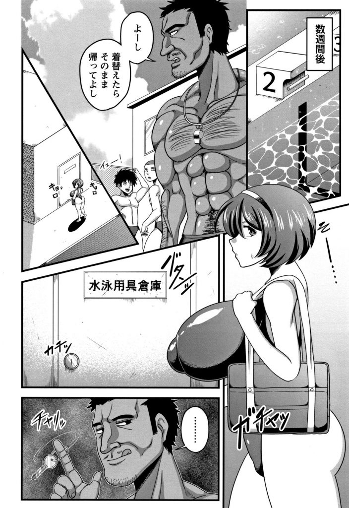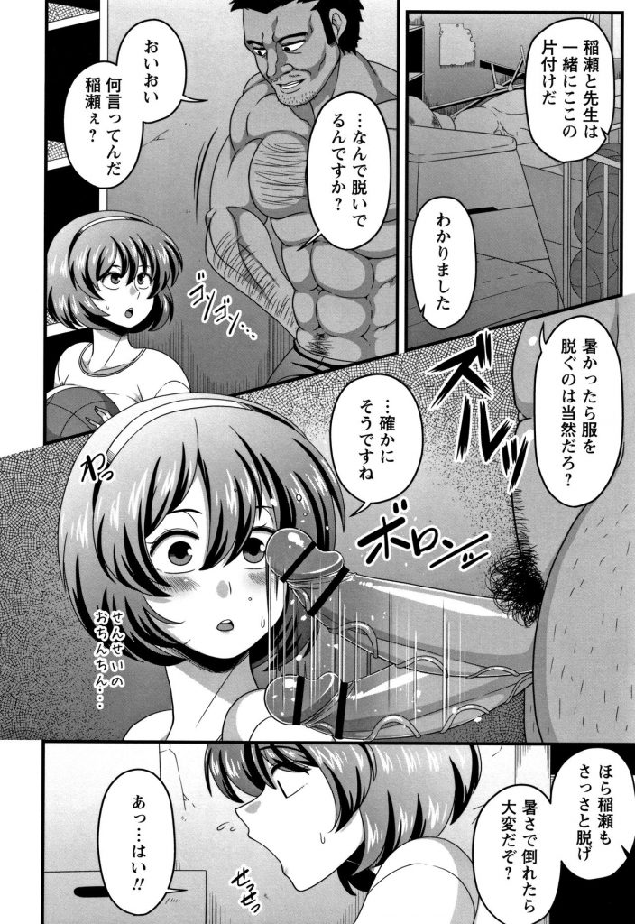 【エロ漫画】セクハラコーチに体育倉庫に呼び出される空手部のボクっ子ブルマJK…散々練習させられ疲れた身体をセクハラコーチに襲われ抵抗できず処女喪失!【雨存:染められた純真無垢】