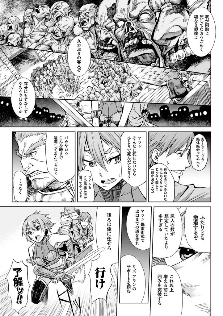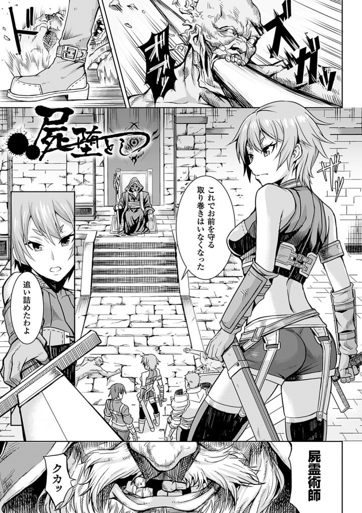 【エロ漫画】ゾンビたちを操るジジイに敗北した女剣士…無数の屍に凌辱され心身を化物ザーメンで汚され悪堕ち【タケ:屍堕とし】