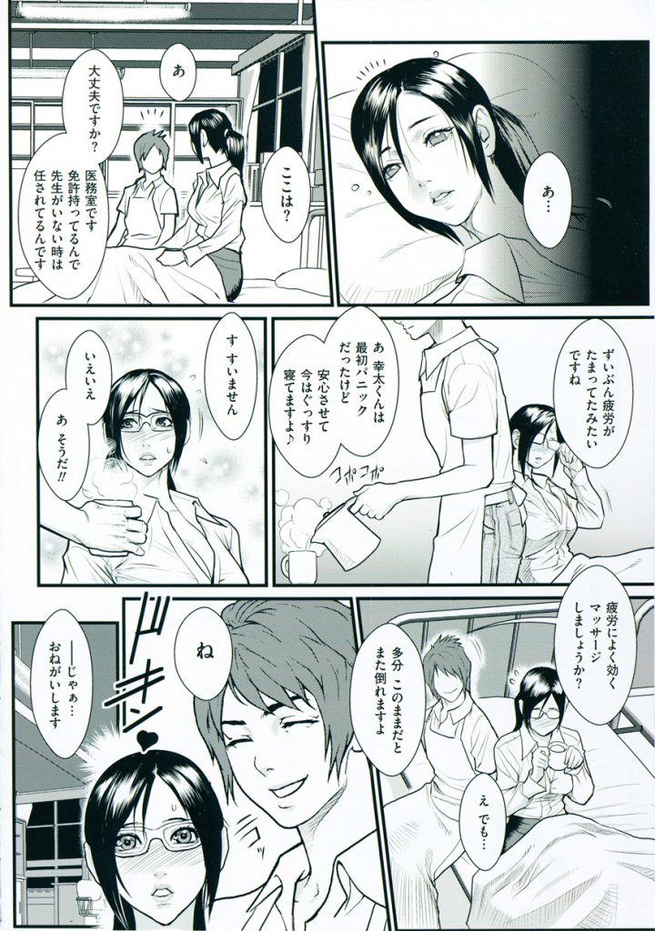 【エロ漫画】マッサージ中に犯されちゃう巨乳のお姉さん…乳首責めやバックで生ハメ中出しイチャラブセックスしちゃう【戦闘的越中:深夜保育】