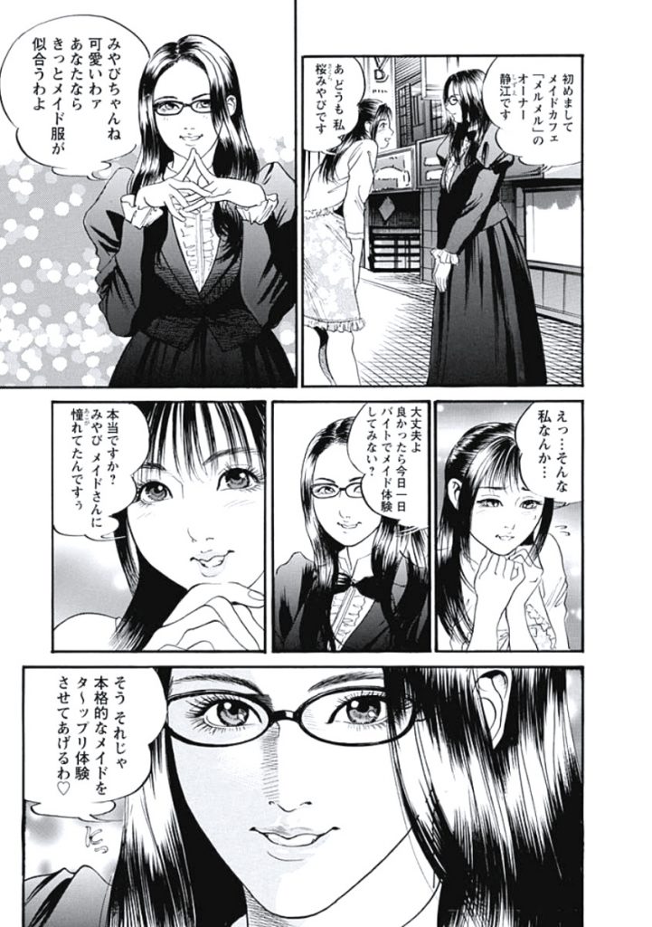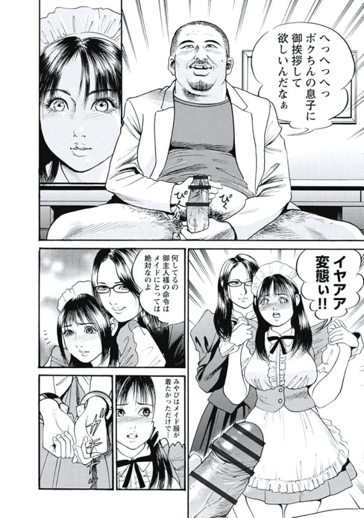 【エロ漫画】メイドの最初のお仕事はチンポをしゃぶる事です!奉仕の真髄を叩き込まれる!性処理メイドの完成!【宮本たつや:メイド研修生みやび】