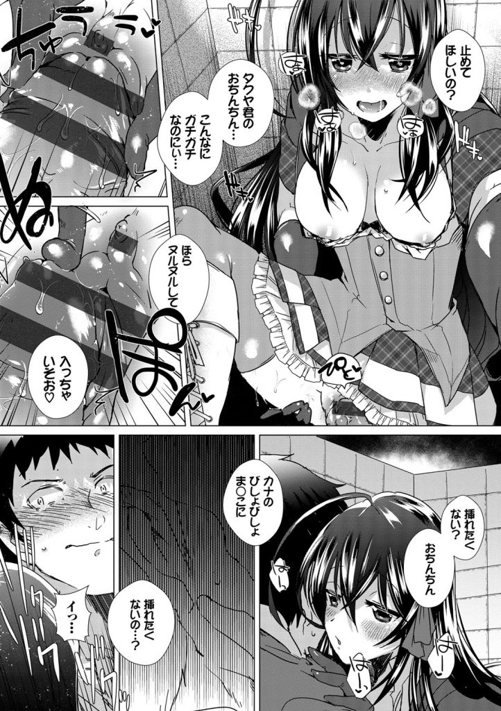 【エロ漫画】ヤンデレクラスメイトに気に入られてしまったアイドル好きな男子が、清楚なアイドルの格好をして迫ってきた彼女に気づかずトイレに連れ込まれフェラをされ中出しセックスしてしまう!【海老名えび:押しかけ系アイドル!】