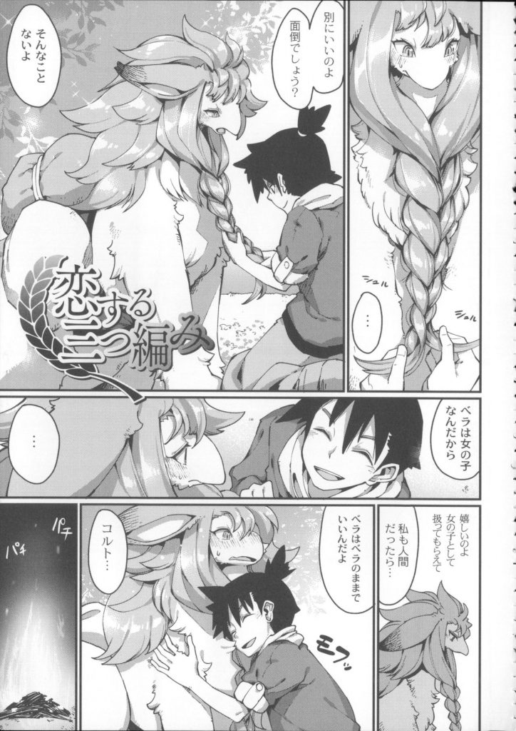 【エロ漫画】三つ編みをしてあげるショタを誘惑してイチャラブセックスしちゃう獣娘…人間の生ちんぽを挿入されてトロ顔で生ハメ中出し絶頂アクメ堕ちしちゃう【音音丸:恋する三つ編み】