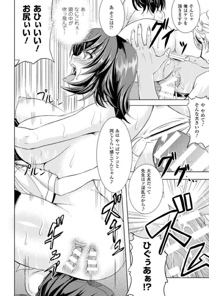 【エロ漫画】不良たちに媚薬を飲まされレイプされちゃう巨乳の女教師…乳首舐めされパンストを破られ生挿入されるとトロ顔で頭の中がぶっ飛び中出し絶頂イキしちゃう【きんたろう:お姉ちゃんのお妙放課後】