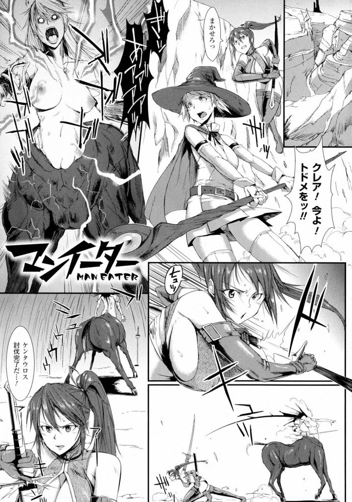 【エロ漫画】人を喰らうケンタウロスに襲われて身体を乗っ取られた美人冒険者…ケンタウロス化した仲間に襲われたもう一人の女冒険者も馬ちんぽで無理やり犯され、鬼畜獣姦レイプで陵辱アヘ絶頂【煌野一人:マンイーター】
