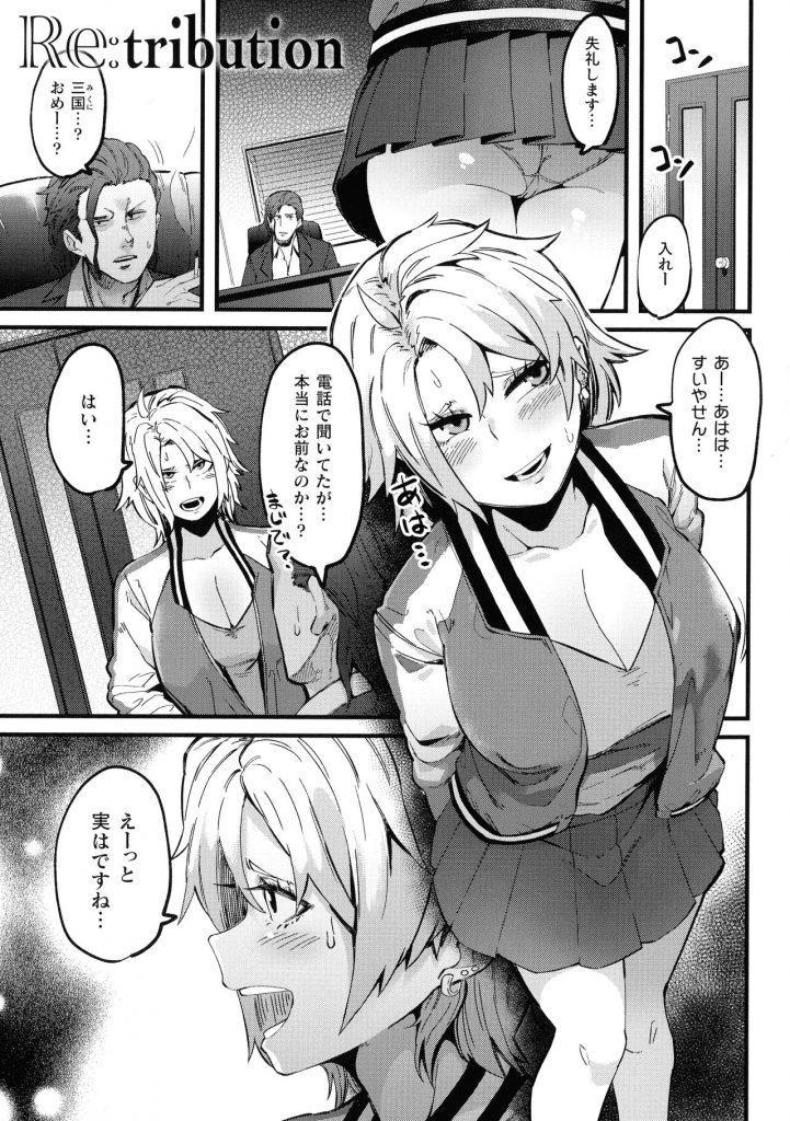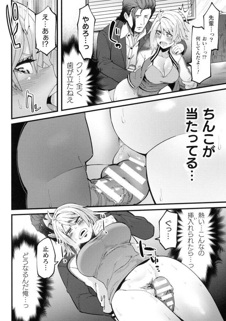 【エロ漫画】先輩に脅迫され犯されちゃう巨乳の淫乱お姉さん…スマート押されバックで生ハメ中出しレイプでアクメ堕ちしちゃう【よんよん:Re:tribution】