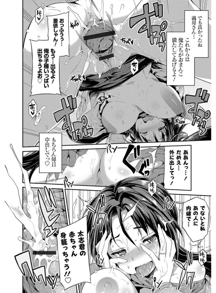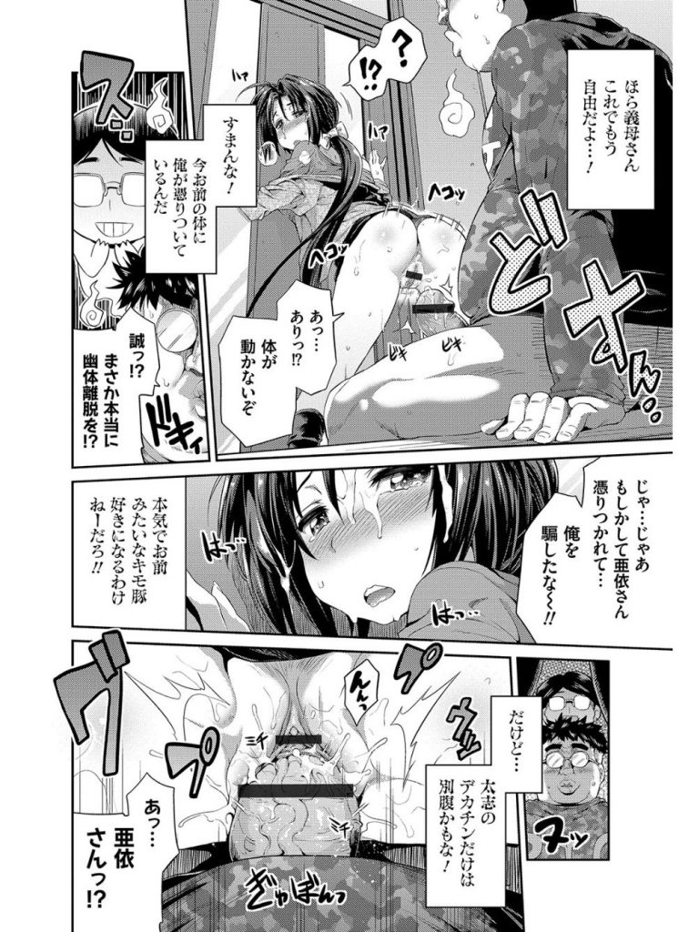 【エロ漫画】取り憑かれ淫乱になっちゃう巨乳の義母…パイズリフェラをして生ハメ中出しいちゃラブセックスしちゃう【日月ネコ:憑りつき☓乗っ取り☓孕ませろ!】