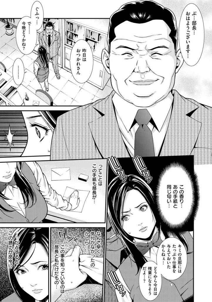 【エロ漫画】夫の部長にED薬を飲まされセクハラされちゃう巨乳の淫乱妻…おっぱい揉みや騎乗位で生ハメ中出しセックスで寝取られちゃう【終焉:妻雫】