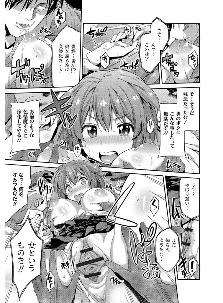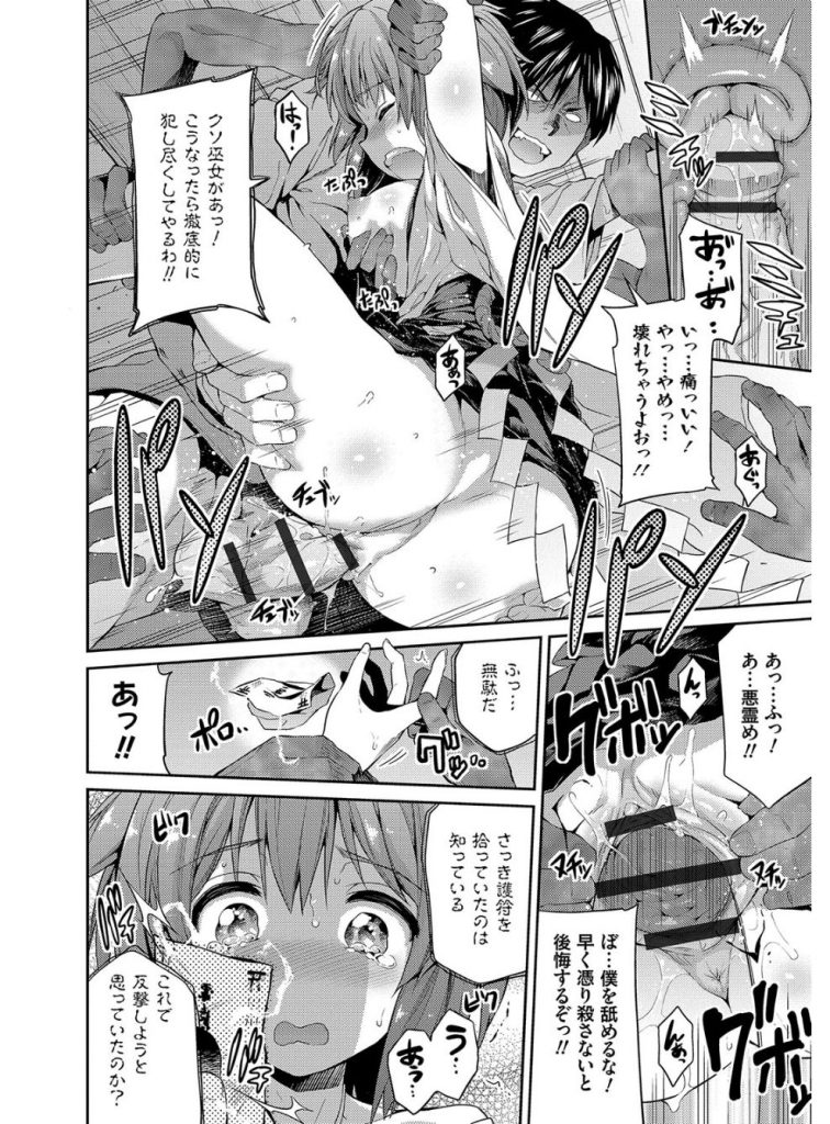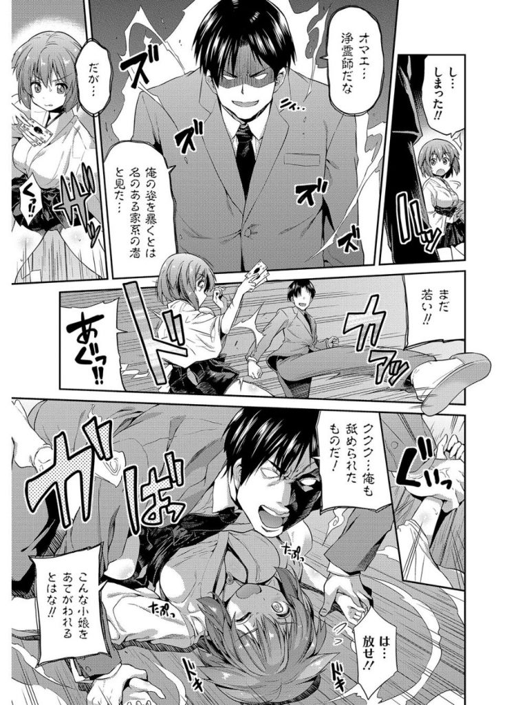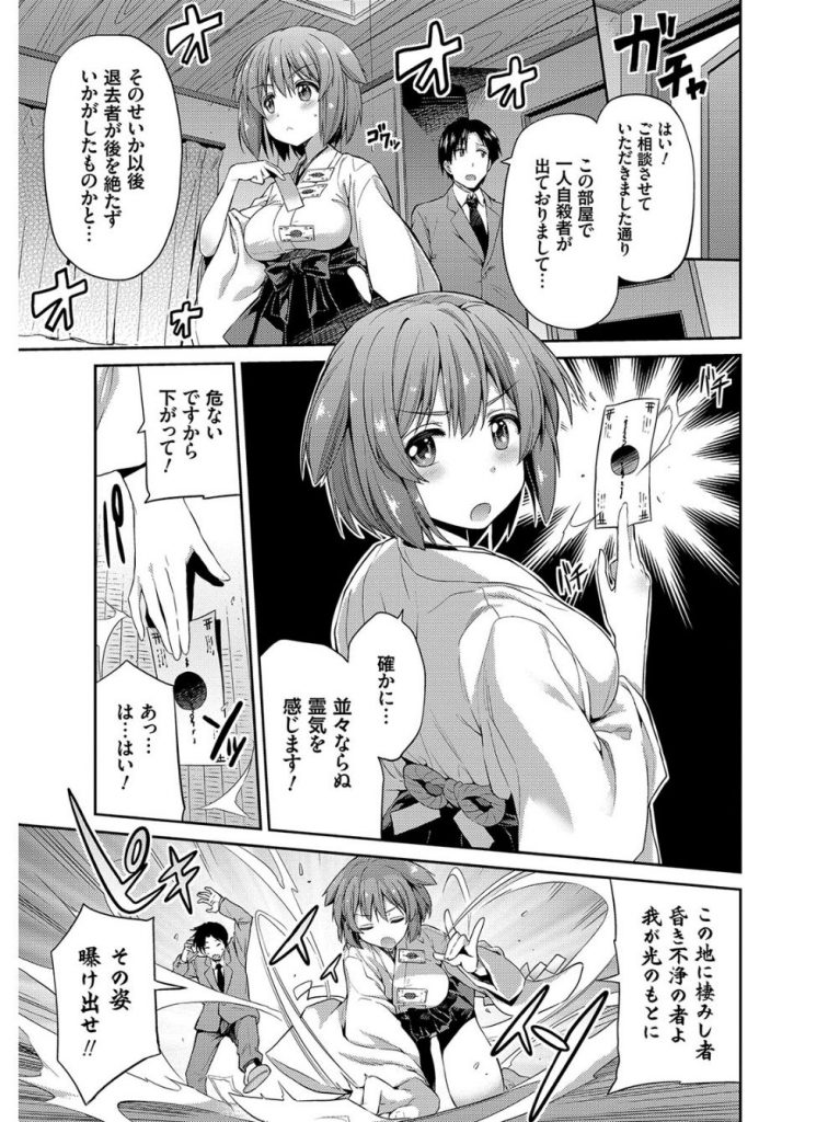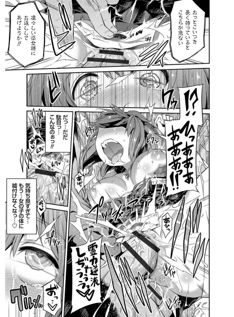 【エロ漫画】女体化して巨乳になった巫女が悪霊に憑かれた男から手マンされて潮吹きしてから生挿入して処女を奪われる初体験中出しレイプされてイッちゃいました!【日月ネコ:狐魂の巫女】