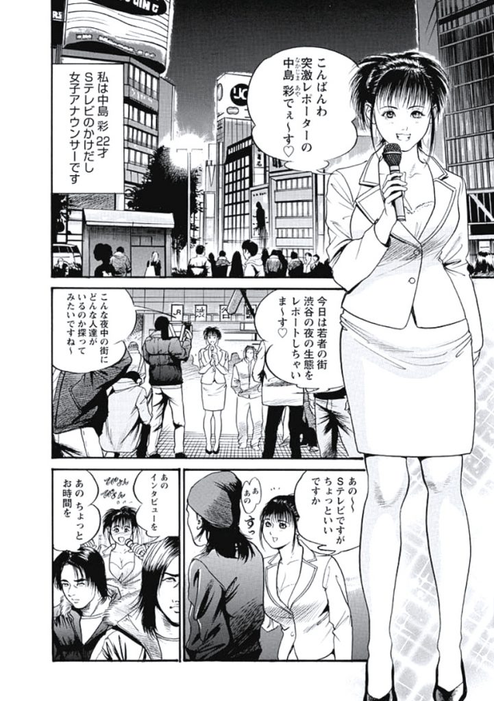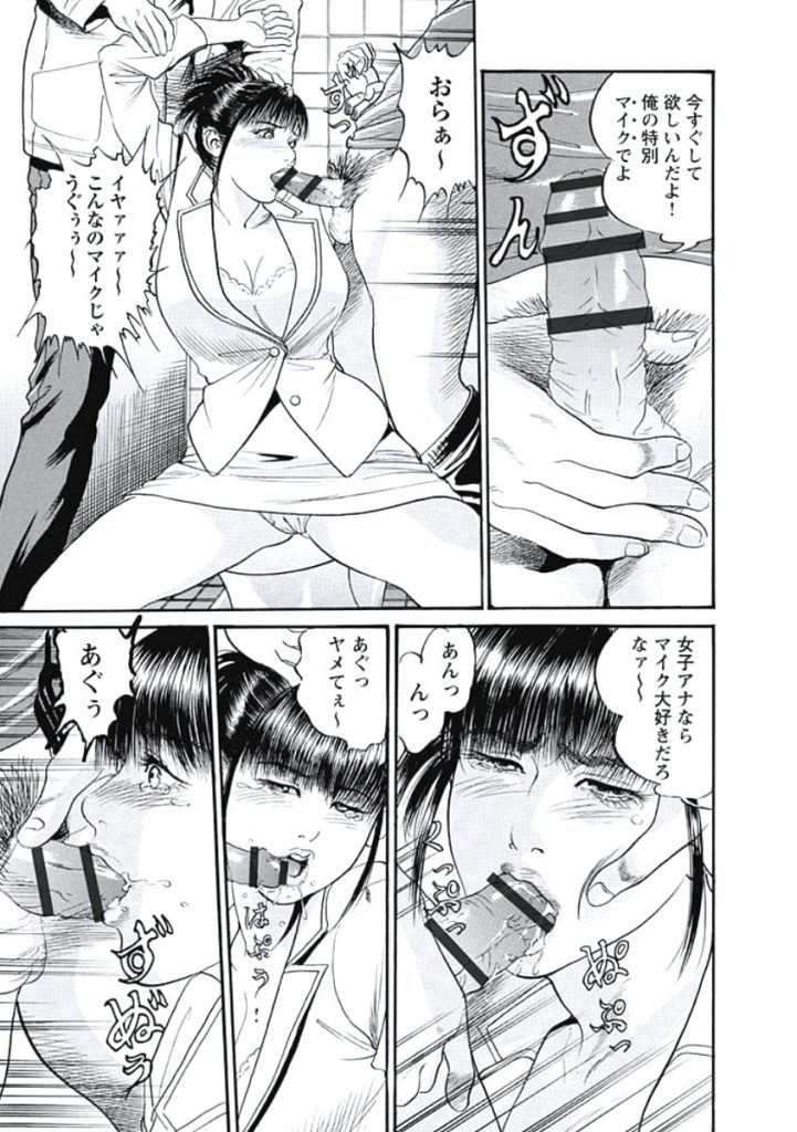 【エロ漫画】女子アナが渋谷チーマーに輪姦された!女子穴にマイク突っ込まれてる!処女アナル開通されて気が狂いました!【宮本たつや:女子アナセクシーミッドナイト】