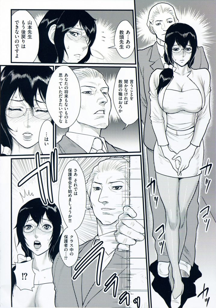 【エロ漫画】女教師の弱みを握って保護者達に提供…クンニや生ハメ中出しセックスしまくり寄付金ガポガポ【戦闘的越中: 飢えた獣たちの狂宴】