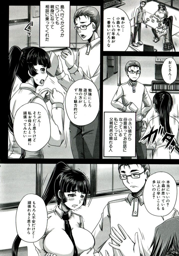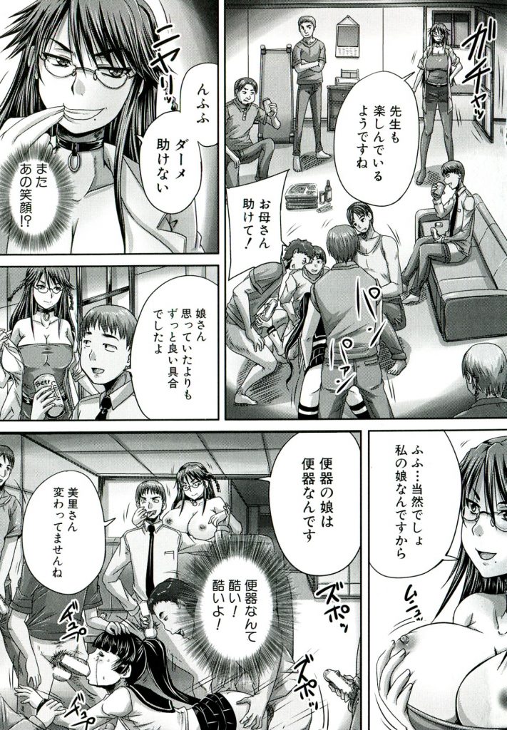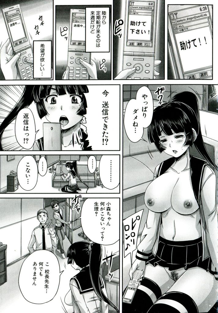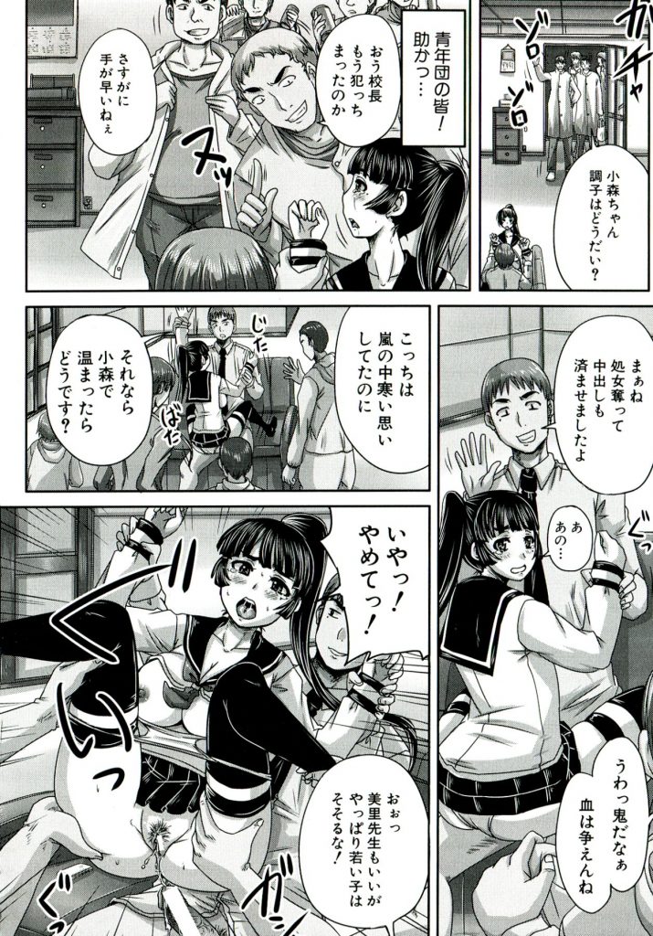 【エロ漫画】島内の男たちに襲われて淫乱な母や友達と一緒に慰み者にされる美少女JK…毎日何度も犯され続け、連続中出し輪姦レイプで肉便器堕ち【秋神サトル:悦楽は永遠に牝だけのモノだ】