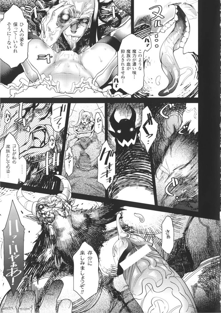 【エロ漫画】巨大な魔王に襲われちゃうお姫様…巨根チンポを生ハメされてトロ顔で孕ませセックスで絶頂アクメ堕ちしちゃう【あまぎみちひと:ニンギョウヒメ】