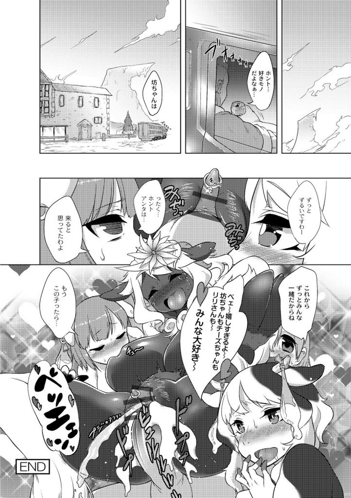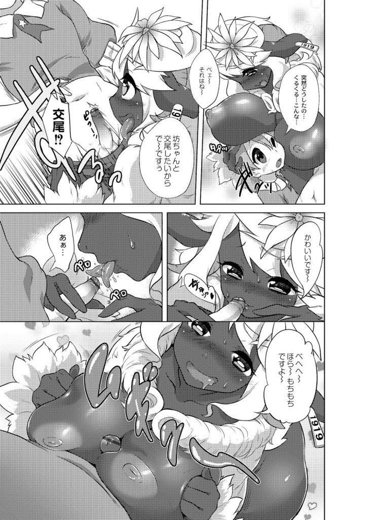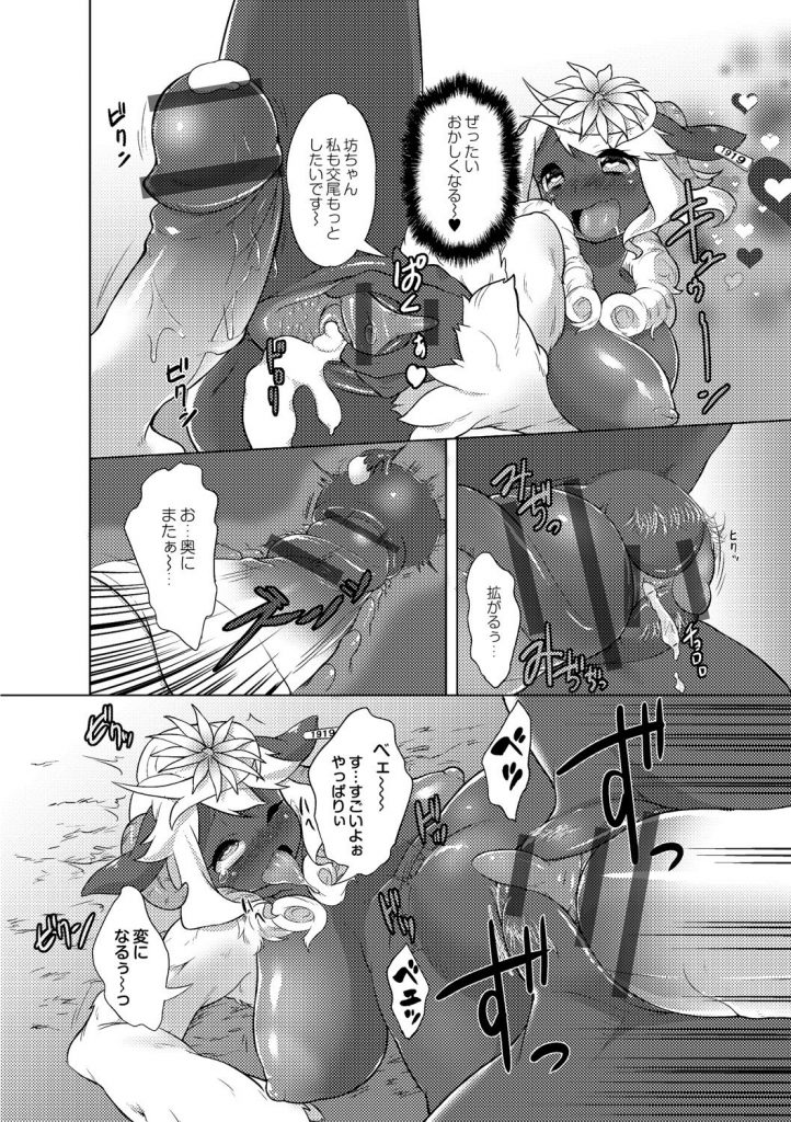 【エロ漫画】巨根のショタチンポで犯されちゃう人外巨乳のお姉さん…騎乗位やバックで生ハメ中出しいちゃラブセックスで絶頂アクメ堕ちしちゃう【あちゅと:牧場のお花畑】