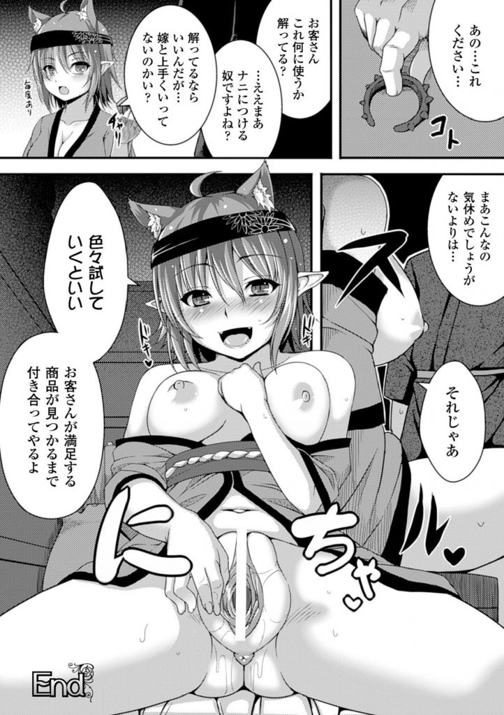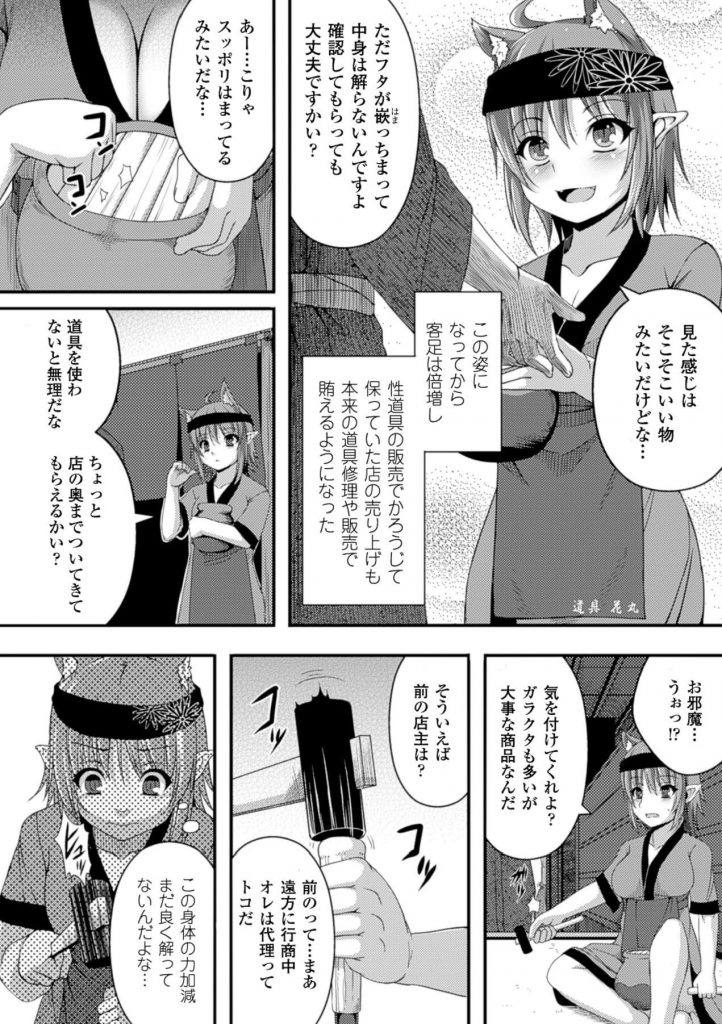 【エロ漫画】店の前で猫又娘から貰った猫の全身皮を試着してみると美少女の姿になり女の体にハマった店主が玩具でオナニーしたりアナルディルド挿入しちゃう!【宇行日和:猫かぶり】