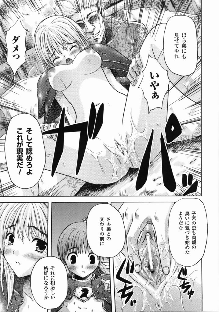 【エロ漫画】性奴隷にされている姿を弟に見られた女騎士の巨乳姉…弟の前でオナニーをする女騎士の巨乳姉は、潮吹きアクメして弟に顔面潮吹きをする。【七瀬瑞穂:Collapse Knight】