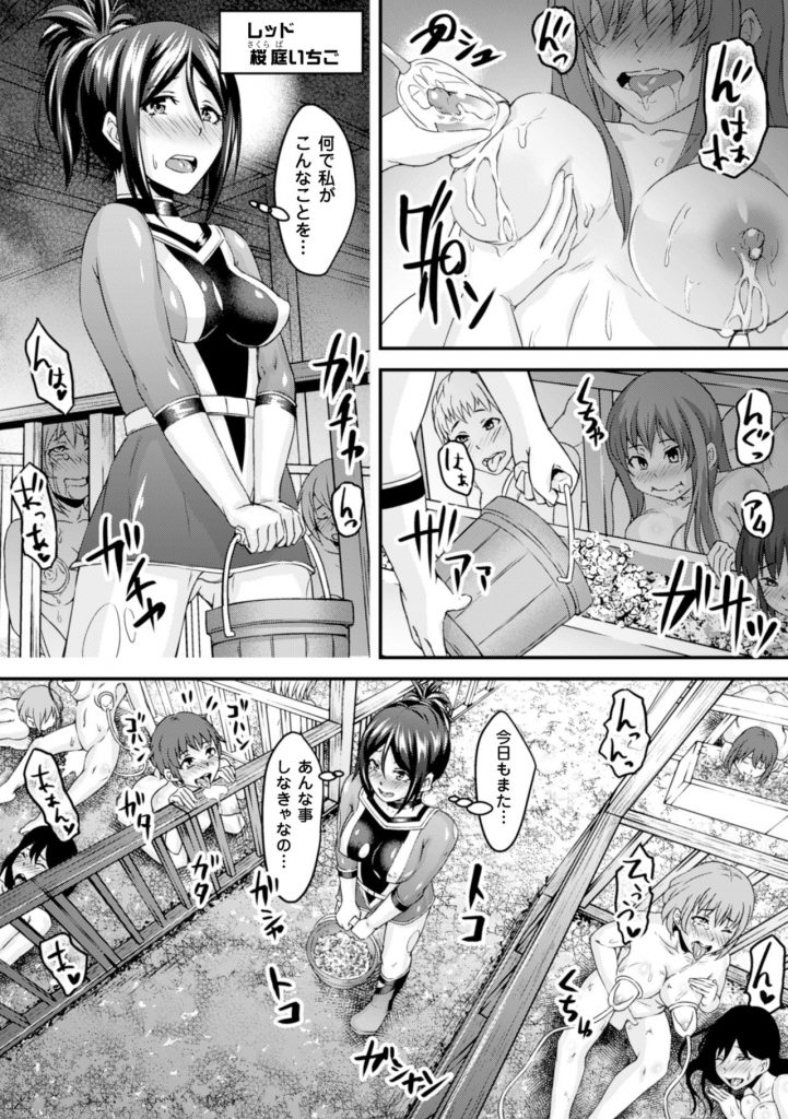 【エロ漫画】悪党どもに敗れた3姉妹女戦士らが強力媚薬を投与され搾乳&種付けレイプで母乳ボテ腹肉便器に調教されてしまった【常夜あかし:姉妹戦隊ベジレンジャー】