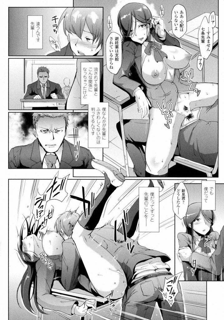 【エロ漫画】授業中に後輩男子を性奉仕しまくる巨乳美人JK。周囲の女子たち同様堂々とご奉仕フェラしてちんぽをハメまくり、公開種付けセックスで雌アクメ【煌野一人:ドロップアウト】
