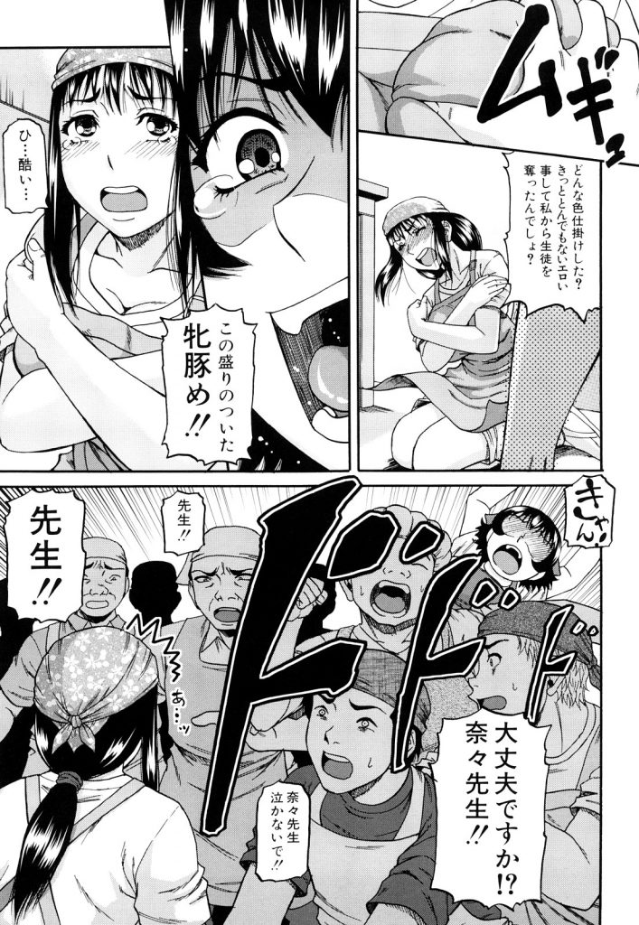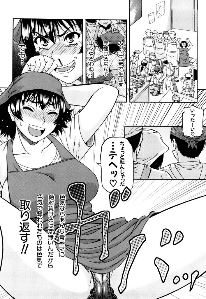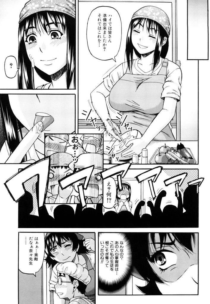【エロ漫画】料理教室でエロ目的で集まった生徒たちに輪姦されて2穴アナルファックで陵辱セックス!【成島ゴドー:うし乳ボンバー】