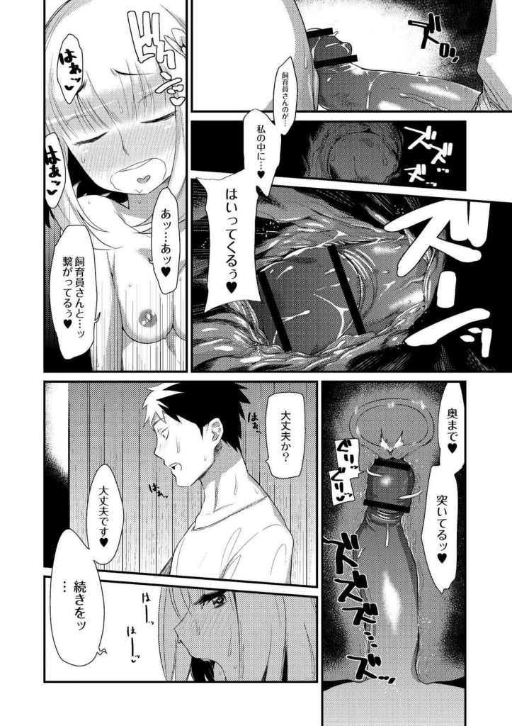 【エロ漫画】新人飼育員は働き始めて3ヶ月仕事に慣れてきた頃、14番のモンスター娘にフェラをされて口内射精する生ハメ中出しいちゃラブセックスしちゃう【みぞね:山羊のお嫁さん!?】