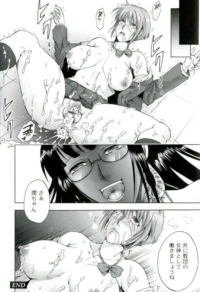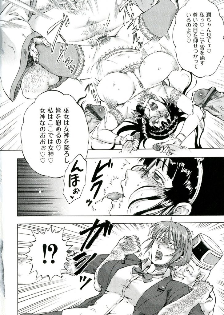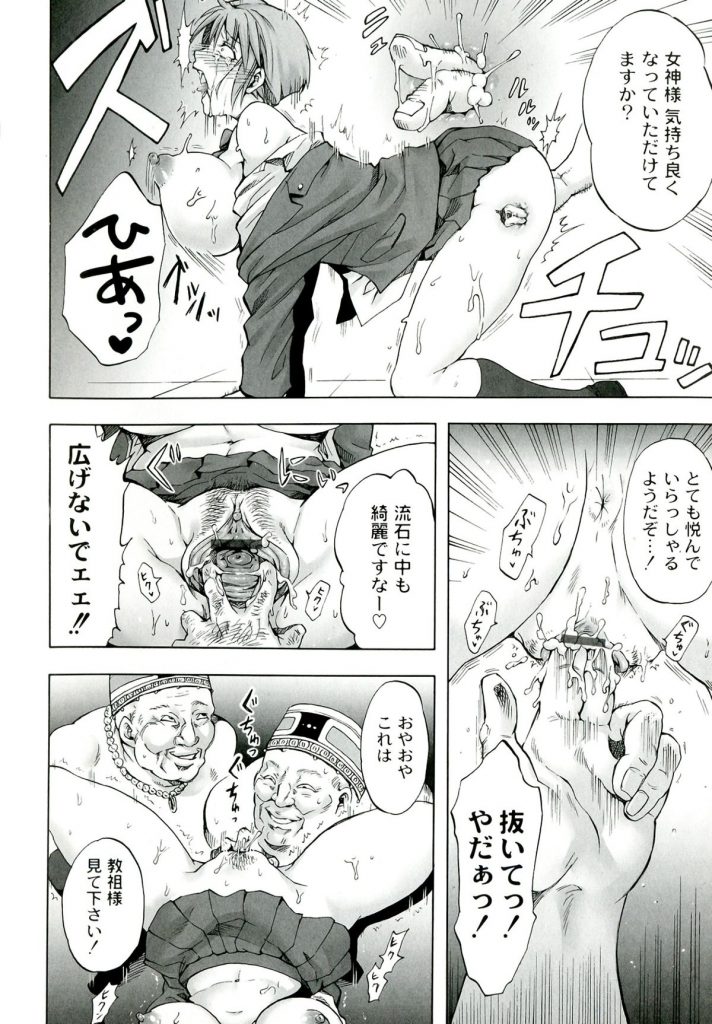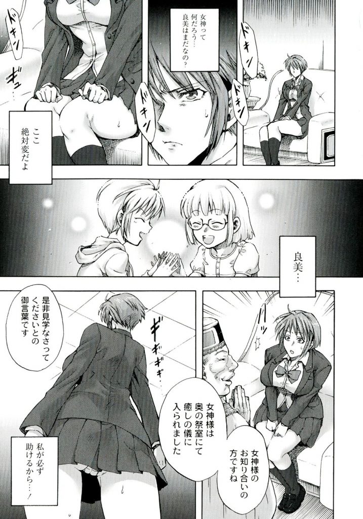 【エロ漫画】新興宗教に入り浸る幼馴染のJKが癒しの儀で教祖や信者のオジサン相手に乱交セックスで乱れまくる!【叙火:信仰の檻】