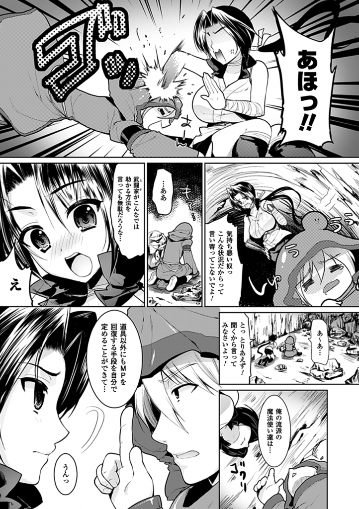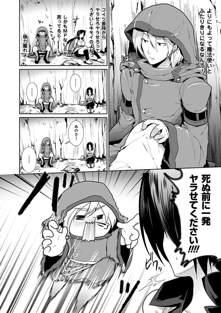 【エロ漫画】洞窟の崩落に巻き込まれた変態魔法使いと巨乳勇者が尿を我慢できなくて漏らしてしまい発情してレイプされる!【狼亮輔:お願いします武闘家ミナさん!】