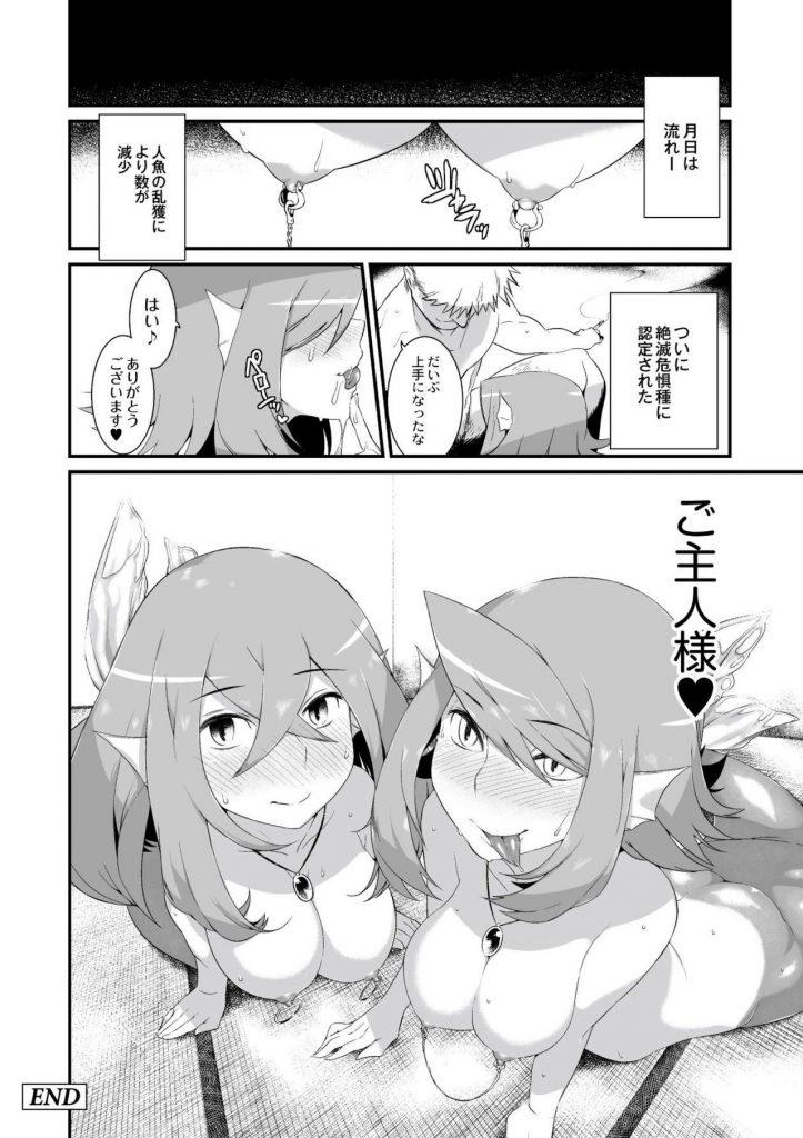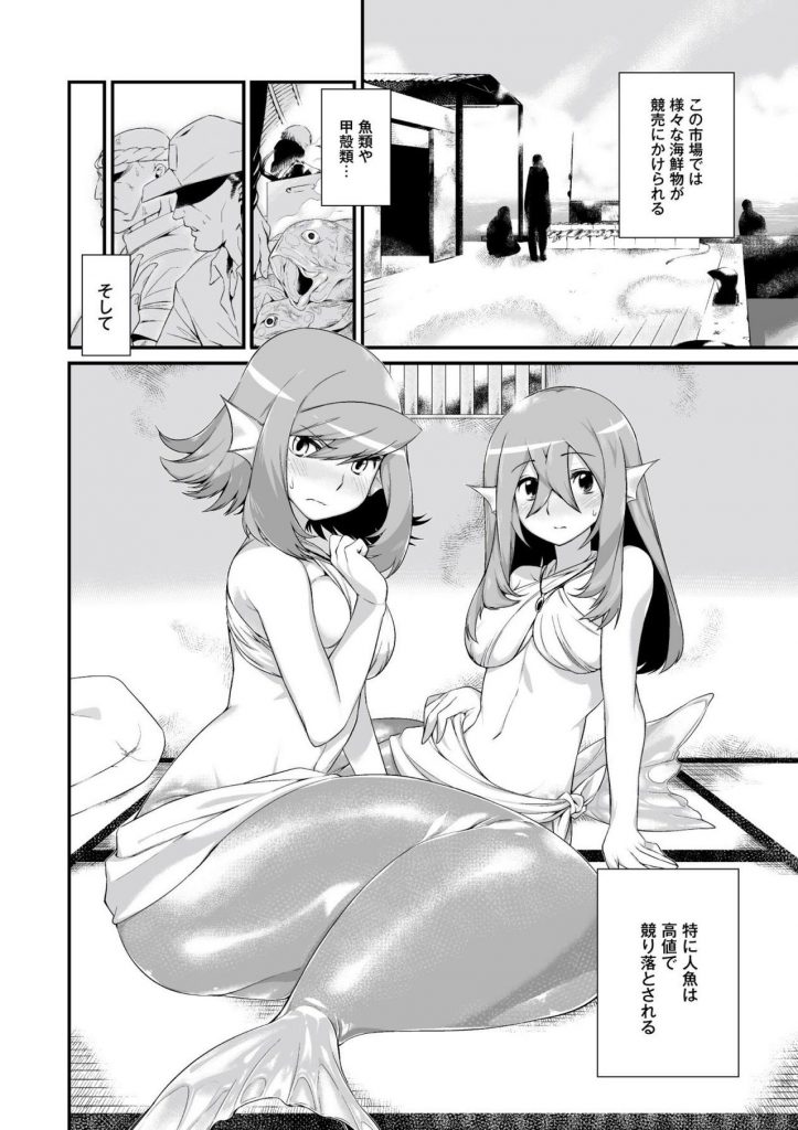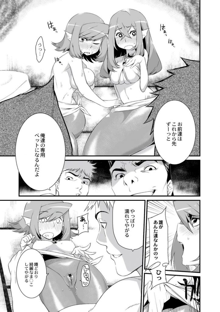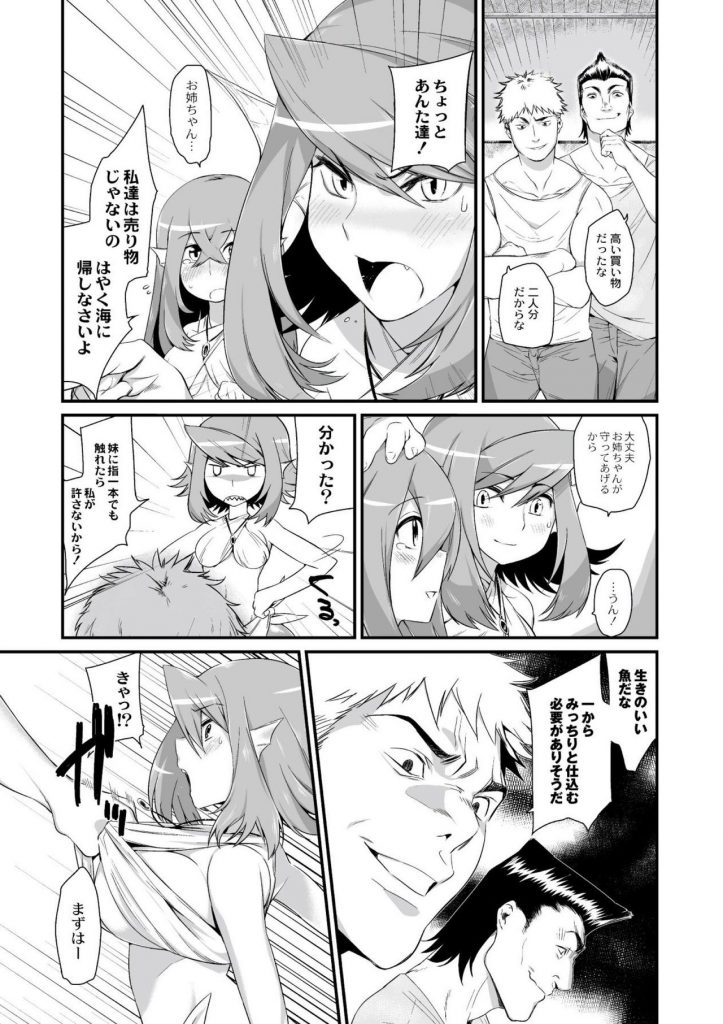 【エロ漫画】漁師に捕らえられた姉妹の人魚が漁師たちの性奴隷に、妹を守るため姉は漁師たちの言いなり、でも姉思いの妹は自らご奉仕を申し出る!【みぞね:人魚販売してます。】