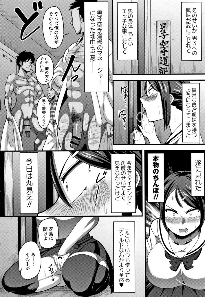 【エロ漫画】空手部マネージャーで部室覗いて男の裸見てオナニーしちゃう目つきが鋭い爆乳JK…覗きがバレてフェラをさせられ生ハメ中出しセックスでメス堕ちしちゃう【雨存:三白眼の目付き悪い」爆乳おっぱい」娘が 「蒸し蒸しの部室でムレムレセックス♥】