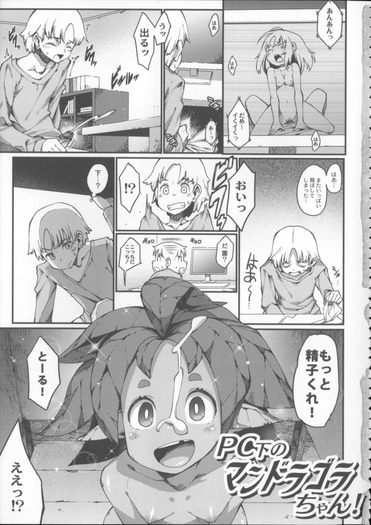 【エロ漫画】突然精子を主食としているというマンドラゴラが机の下に生えてきて、毎日精子をぶっかけ飲ませていたら完全体になりいちゃラブセックス【音音丸:PC下のマンドラゴラちゃん】