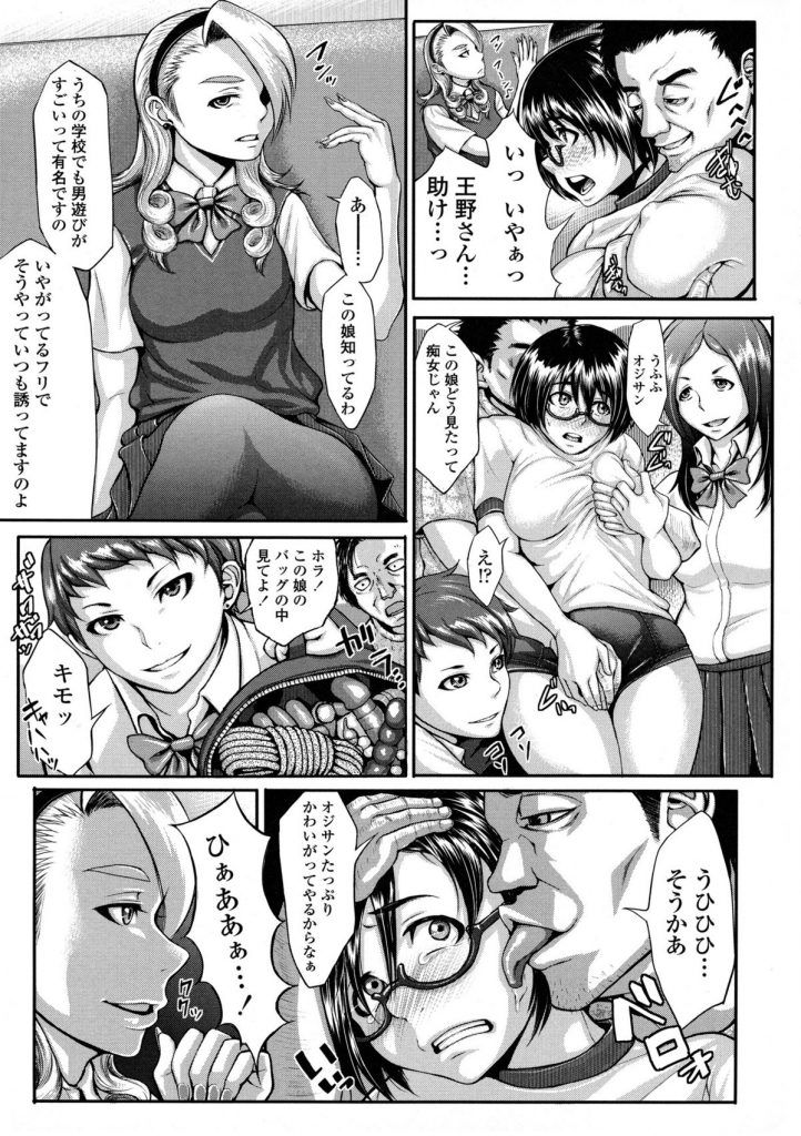 【エロ漫画】競艇場帰りのおっさんで満員のバスにブルマ姿でたたずむメガネ女子高生…いじめっ娘3人組に命令されおっさん達を誘惑し痴漢ものと思ったら輪姦レイプされちゃう!【ぶるまにあん:ぶるまわ!】