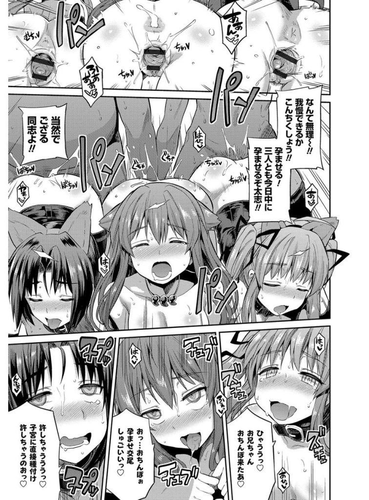【エロ漫画】絶倫男に種付をおねだりする淫乱少女たち…発情を抑えられない彼女たちはギンギンに勃起した巨根で立ちバックで犯されまくっては絶頂する!【日月ネコ:憑りつき×乗っ取り×孕ませろ! 】
