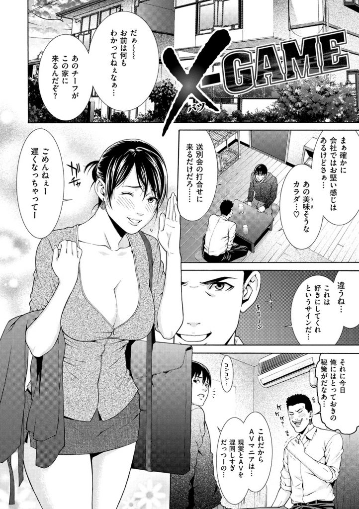 【エロ漫画】部下に座布団のバイブを仕込まれ腰が抜けてしまうチーフお姉さん…強制フェラをさせられ騎乗位やバックで2穴同時責めで絶頂アクメ堕ちしちゃう【終焉:X-GEME】
