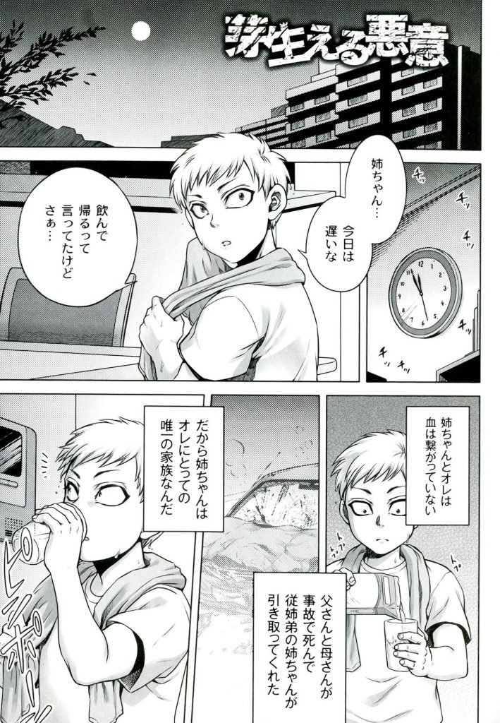 【エロ漫画】酔っ払って寝ている姉を夜這いしちゃう弟…寝込みから生ハメ中出し近親相姦プレイで絶頂アクメ堕ちしちゃう【叙火:芽生える悪意】