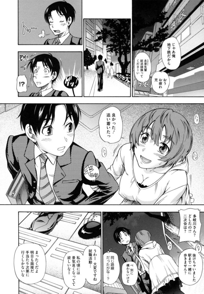 【エロ漫画】飲み会で解散して帰宅する先輩男性を追いかける巨乳後輩JD…ホテルにいきご奉仕フェラをして生ハメ中出しいちゃラブセックス【フクダーダ:サクラチルサク】