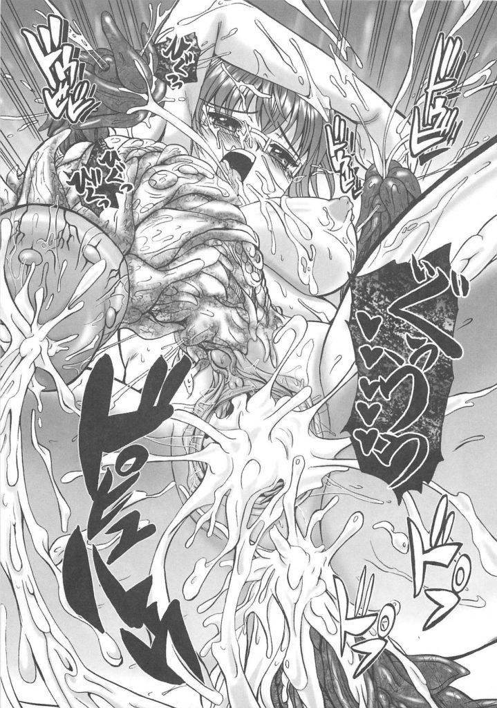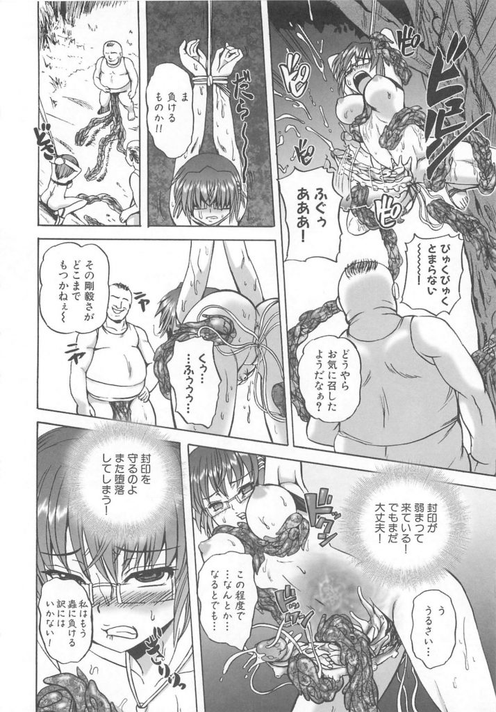 【エロ漫画】鬼に囚われたメガネの退魔師…触手のチンポで全身を愛撫され2穴同時挿入でアクメ堕ちしちゃう【くもいたかし:堕落蟲】