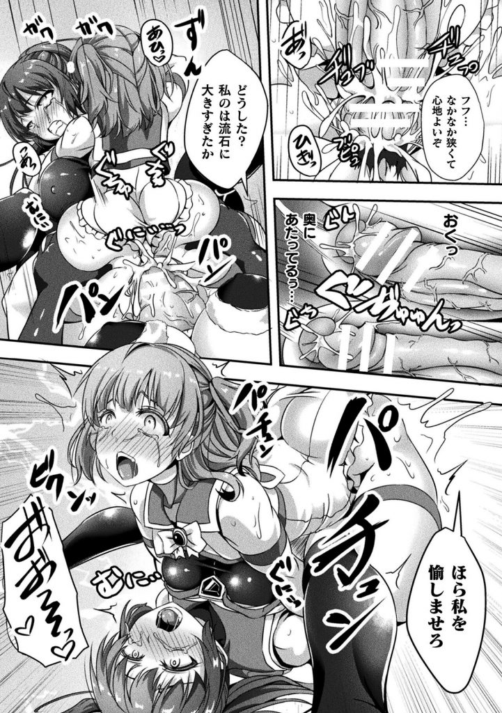 【エロ漫画】魔物たちのボスに捕らえられてしまった巨乳美少女ヒロインがふたなりちんぽとまんこを同時に責められ陵辱される!【はこまる:堕とされた双華アオバ・モモカ】