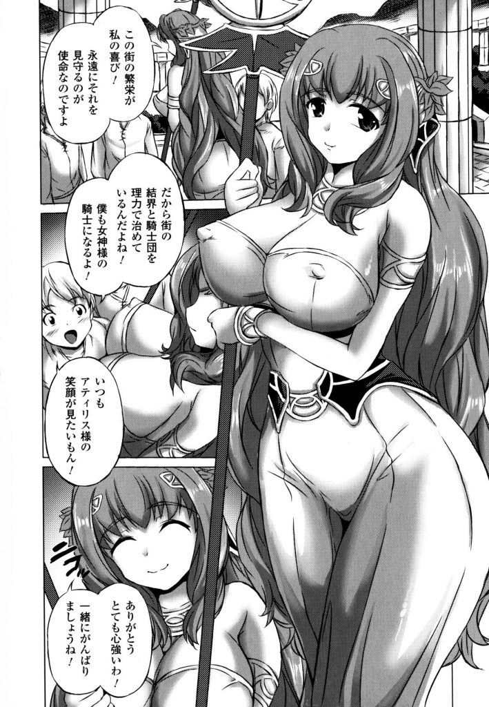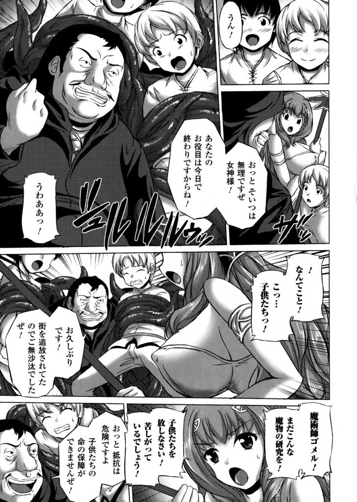【エロ漫画】魔物に襲われちゃう守護女神のお姉さん…触手で拘束されてトロ顔で生ハメ中出しレイプで絶頂アクメ堕ちしちゃう【にゃご丸:守護女神の姦落】